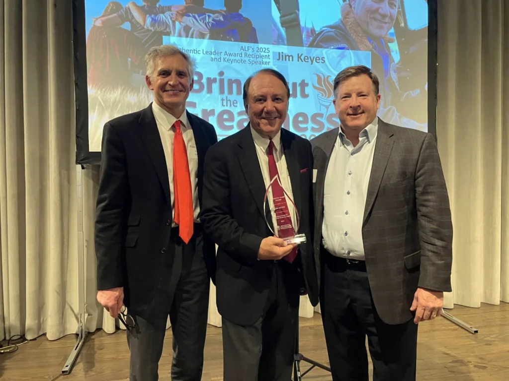 Photo: Board Chair Pierre Koshakji and Board Member Will Hodges with Jim Keyes, 2025 Authentic Leader Award Honoree